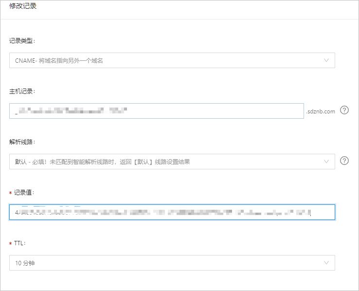 為域名增加一個解析,按上面的記錄信息。
