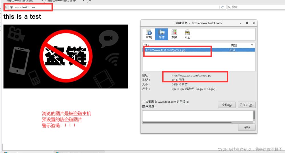 本實驗中我準備了兩臺虛擬機,一臺是源碼編譯安裝apche服務的主機,作為被盜鏈的主機,域名設置為www.test.com 另一臺為yum安裝apache服務的主機,作為盜鏈的主機,域名設置為www.test1.com